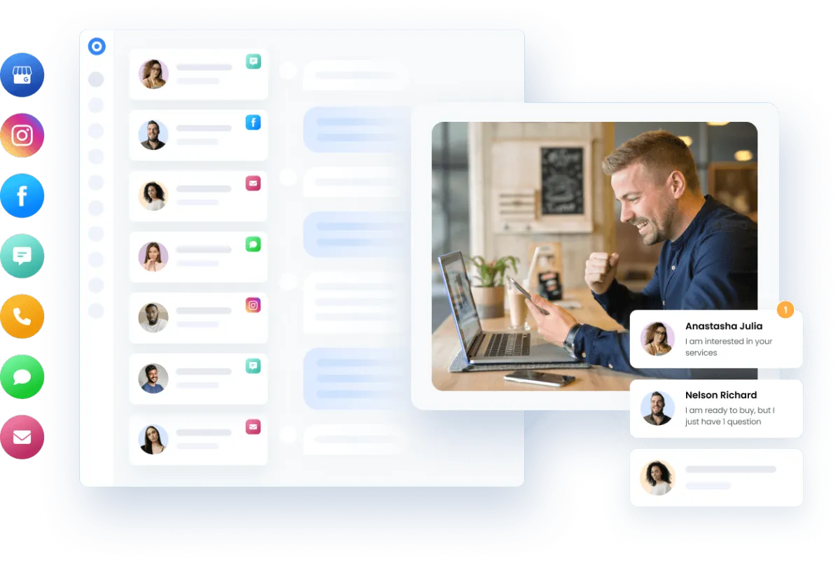 No more juggling multiple apps — web chat, SMS, Messenger and WhatsApp all connect through one system.