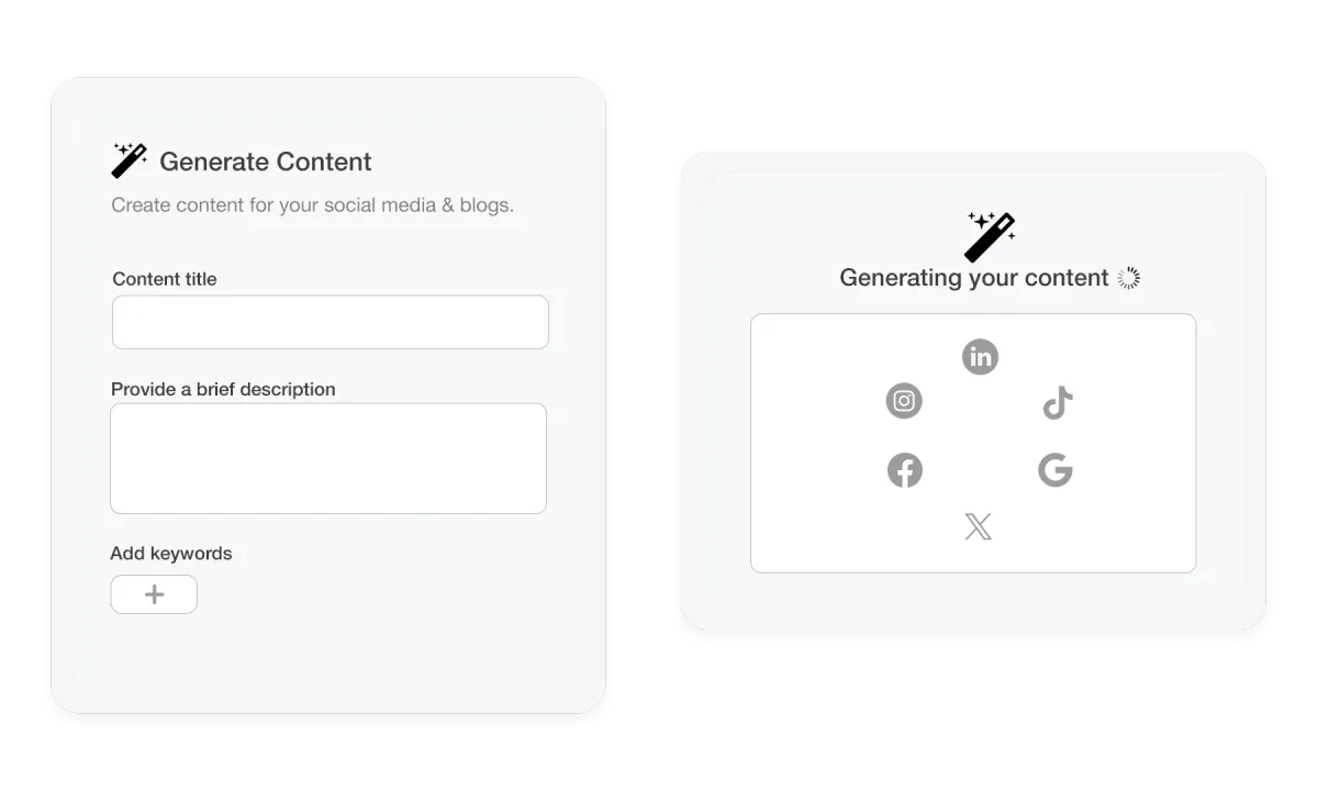 Stuck on what to say or share on social media? Content AI helps you create compelling copy and visuals in minutes, perfectly aligned with your brand. No writing or design skills required.